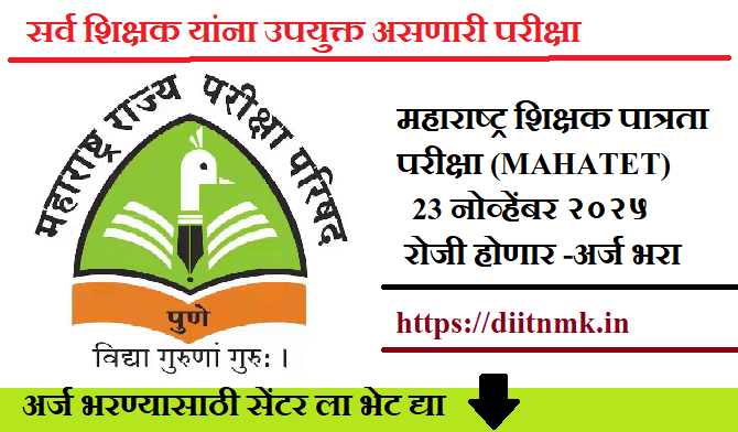 महाराष्ट्र शिक्षक पात्रता परीक्षा (MAHA TET) 23 नोव्हेंबर २०२५ रोजी होणार -अर्ज भरा